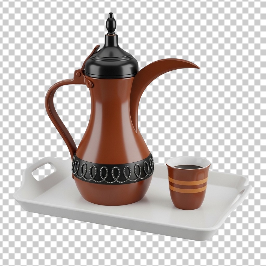 3D Traditional Arabic Coffee Pot Dallah and Cup PNG Transparent Background