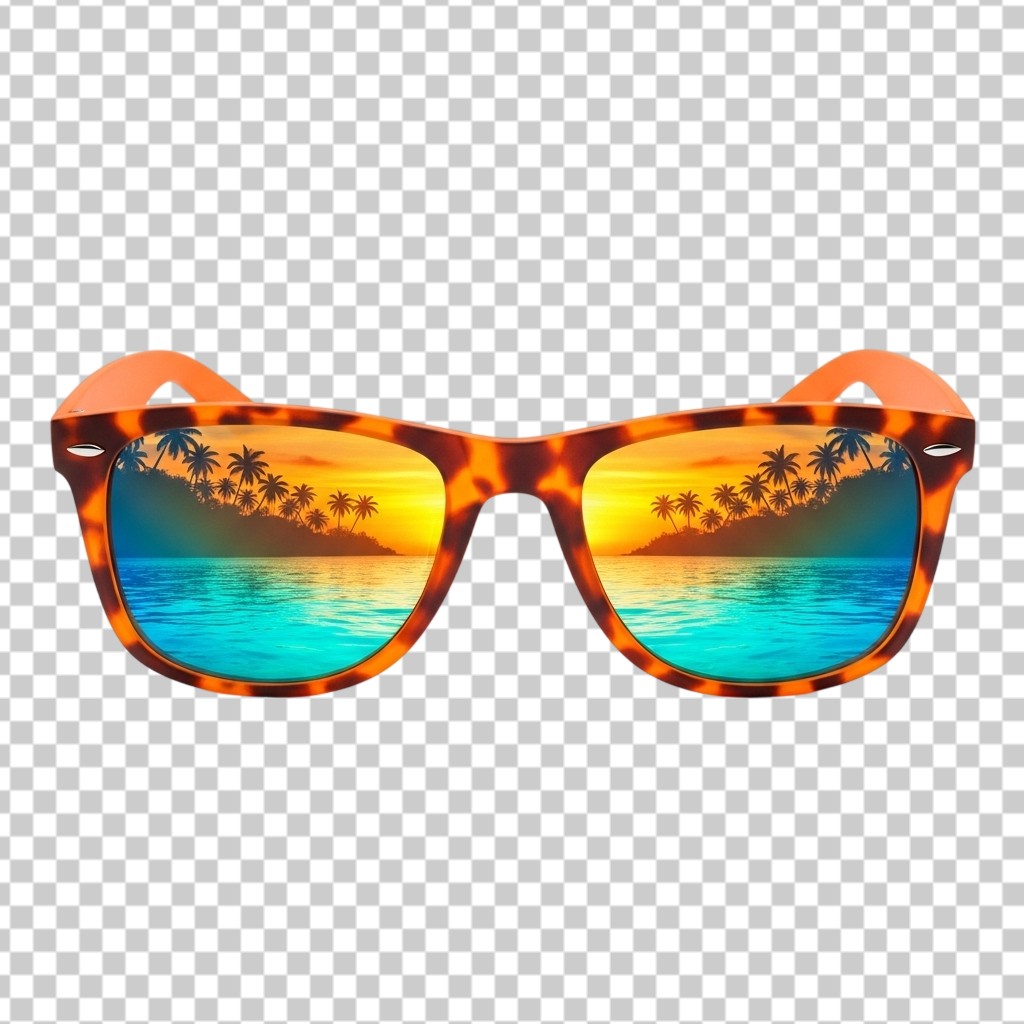 Summer Sunglasses with Tropical Beach Reflection PNG Transparent Background