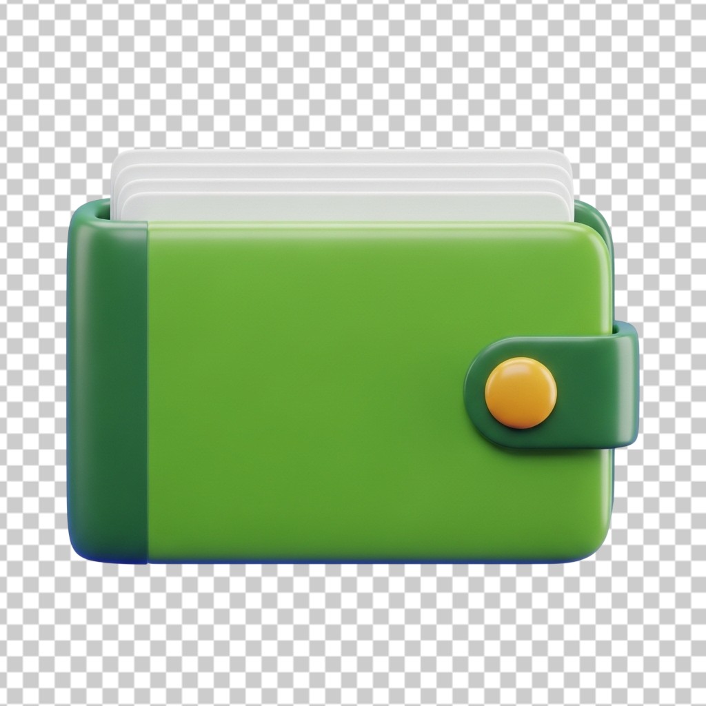 3D Green Leather Wallet with Cash and Cards PNG Transparent Background