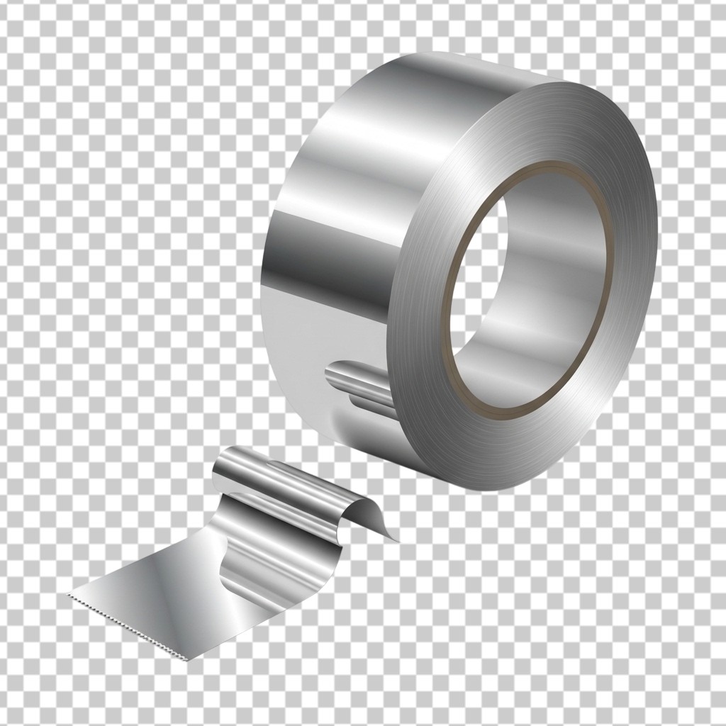 Roll of Silver Metallic Industrial Duct Tape PNG Transparent Background