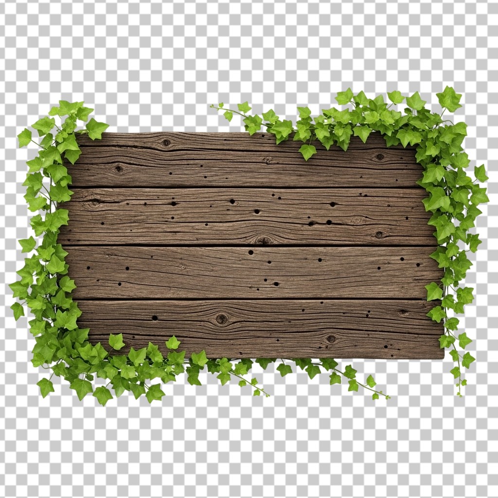 Rustic Blank Wooden Sign Board with Green Ivy Leaves Border PNG Transparent Background