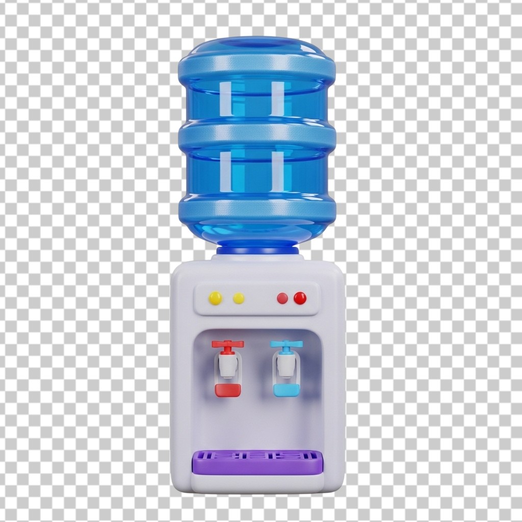 3D Office Water Dispenser Cooler with Blue Bottle PNG Transparent Background