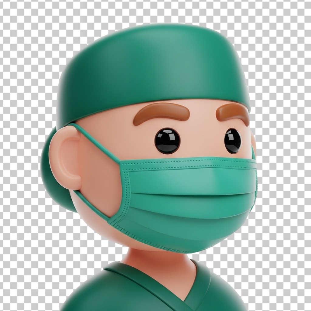 3D Male Surgeon Doctor Avatar with Medical Mask PNG Transparent Background