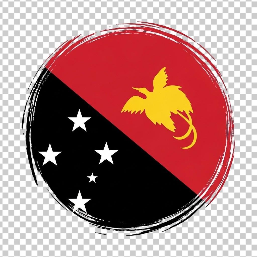 Circular Papua New Guinea Flag Emblem PNG Transparent Background