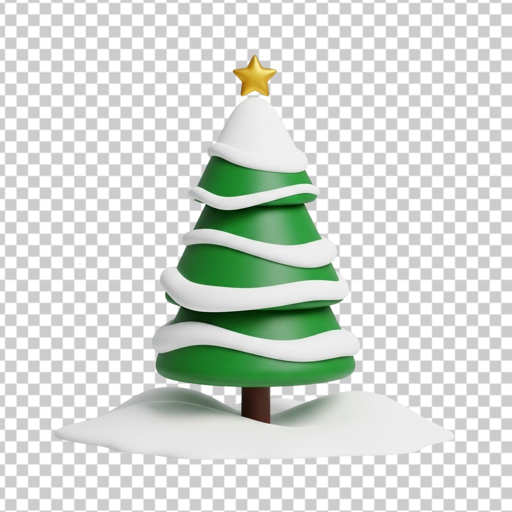 3D Stylized Christmas Tree with Snow and Star PNG Transparent Background