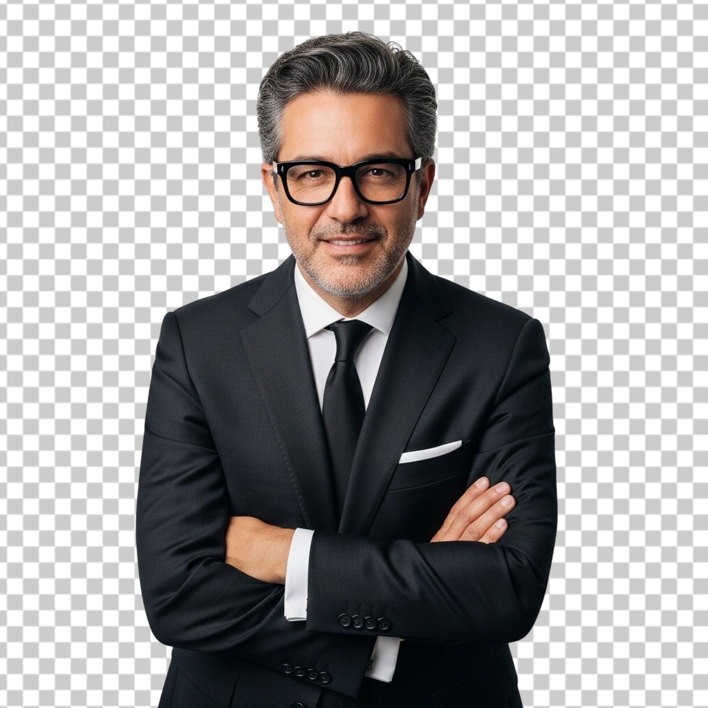 Confident Businessman in Black Suit with Folded Arms PNG Transparent Background
