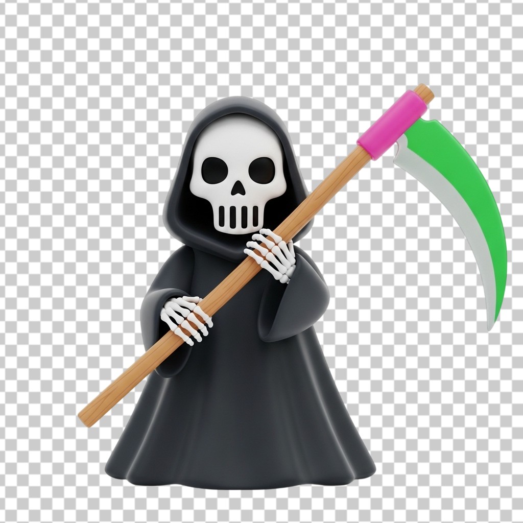 Grim Reaper Character with Scythe 3D Illustration PNG Transparent Background