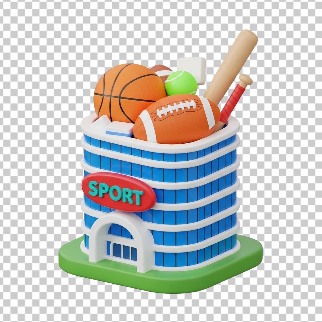 3D Modern Sports Complex Building with Equipment on Roof PNG Transparent Background
