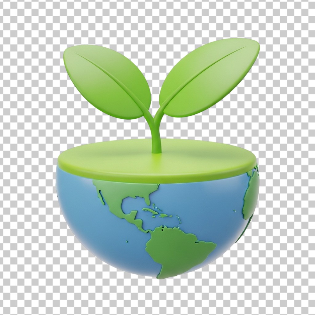 3D Green Plant Sprouting from Planet Earth Globe PNG Transparent Background