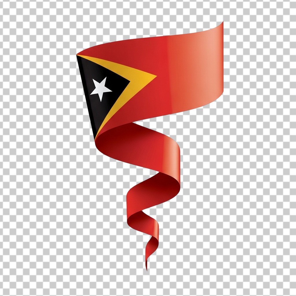 Timor-Leste Waving Ribbon Flag 3D Glossy National Symbol PNG Transparent Background