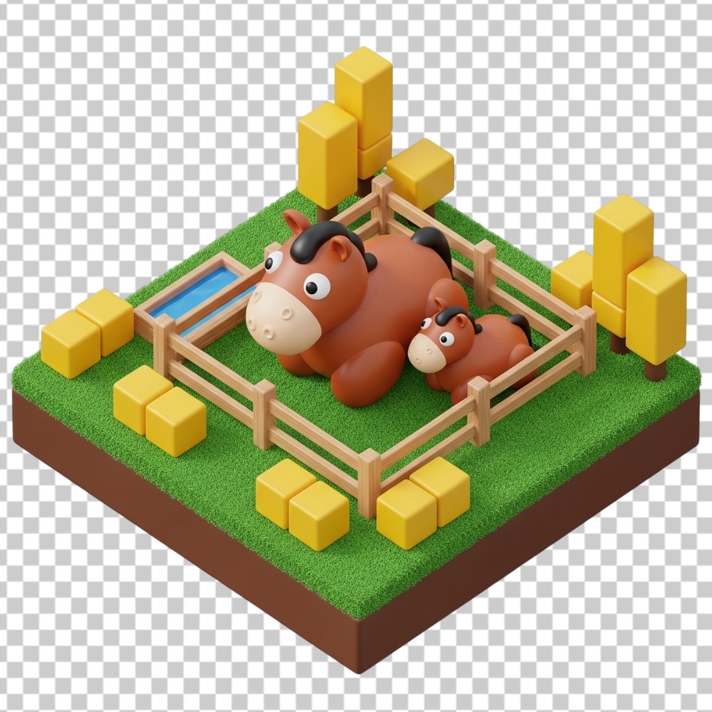Isometric Farm with Cow and Pig 3D Illustration PNG Transparent Background