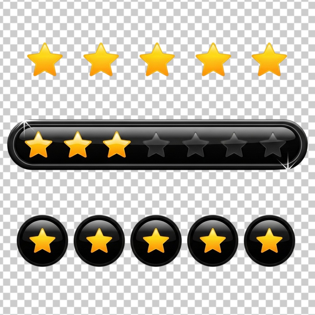 Glossy Five Star Rating and Review Icons PNG Transparent Background