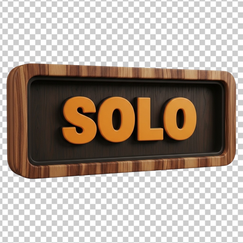 3D Wooden Solo Sign Board for Games and Social Media PNG Transparent Background