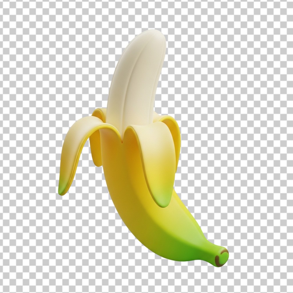 3D Fresh Peeled Yellow Banana Fruit Illustration PNG Transparent Background