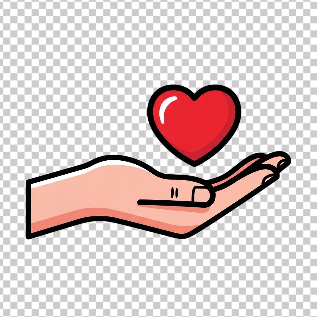 Hand Drawn Illustration of a Hand Holding a Red Heart Symbol PNG Transparent Background