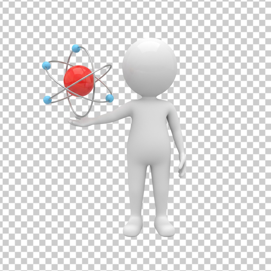 3D Scientist Character Holding a Model of an Atom PNG Transparent Background