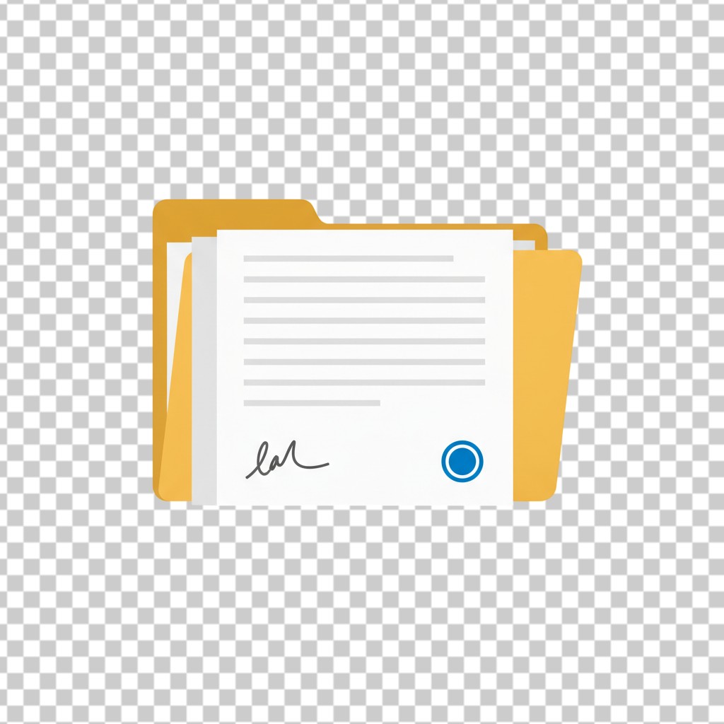 Yellow Office Folder with Documents and Official Stamp Icon PNG Transparent Background