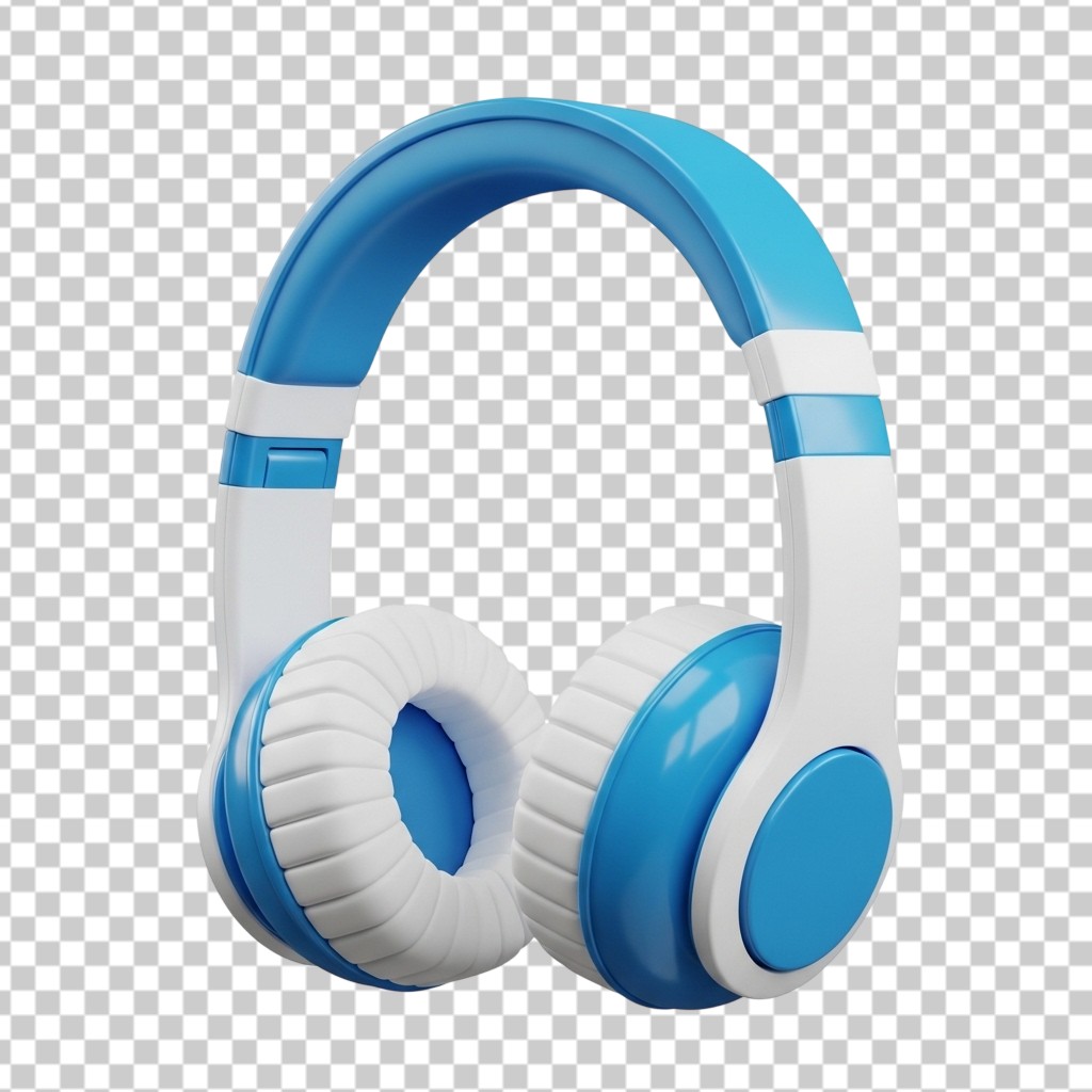 Blue and White Over-Ear Headphones 3D Tech Gadget PNG Transparent Background