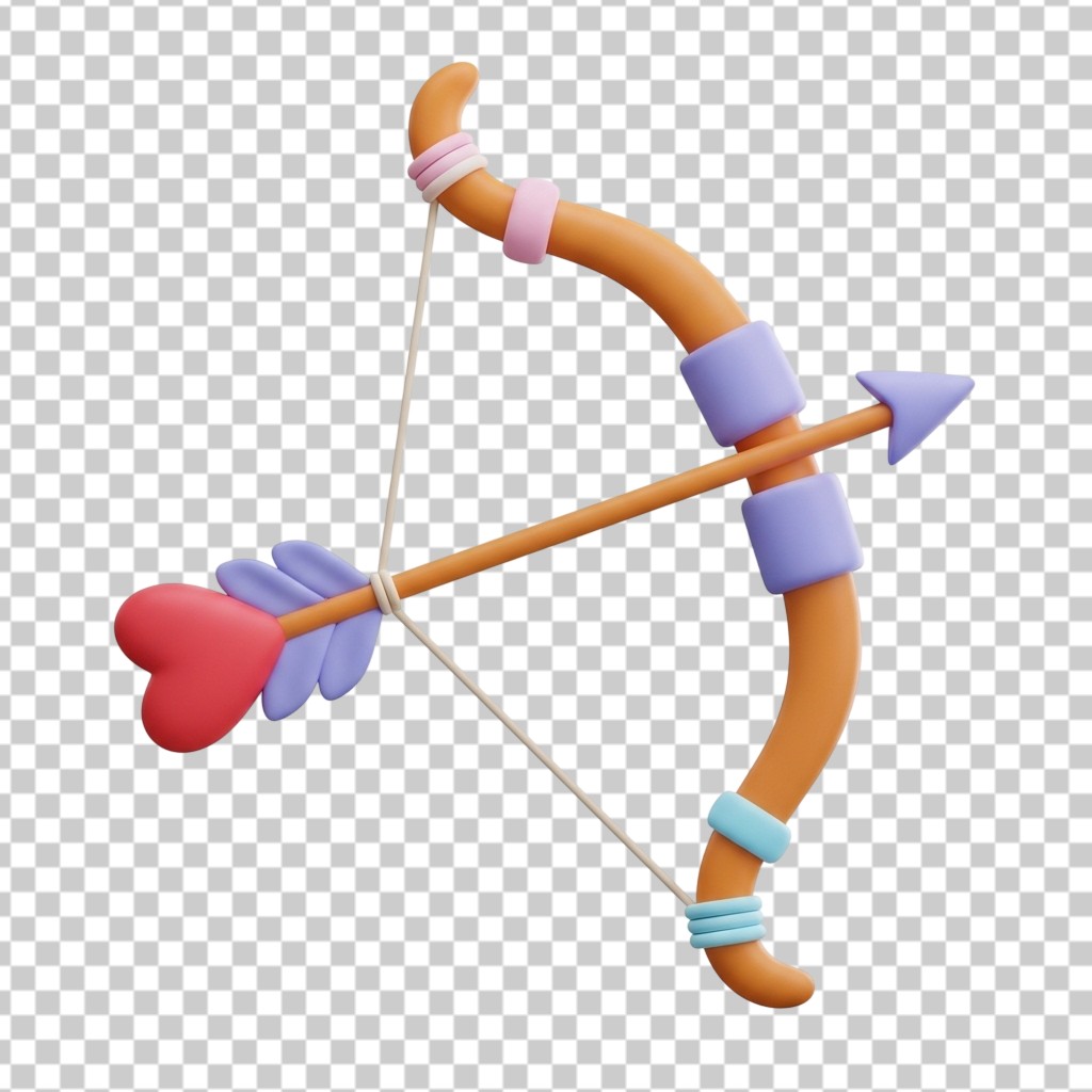 Wooden Cupid's Bow and Arrow with Heart 3D PNG Transparent Background
