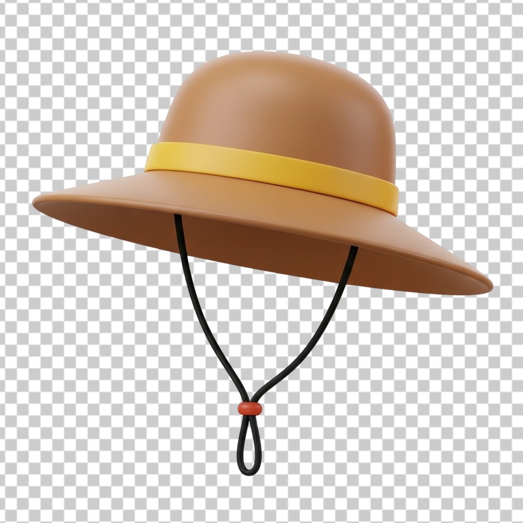 Wide Brimmed 3D Summer Sun Hat with Strap PNG Transparent Background