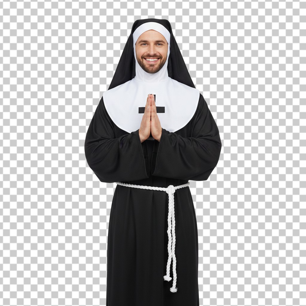 Smiling Person Dressed in Traditional Nun Habit with Joined Hands PNG Transparent Background