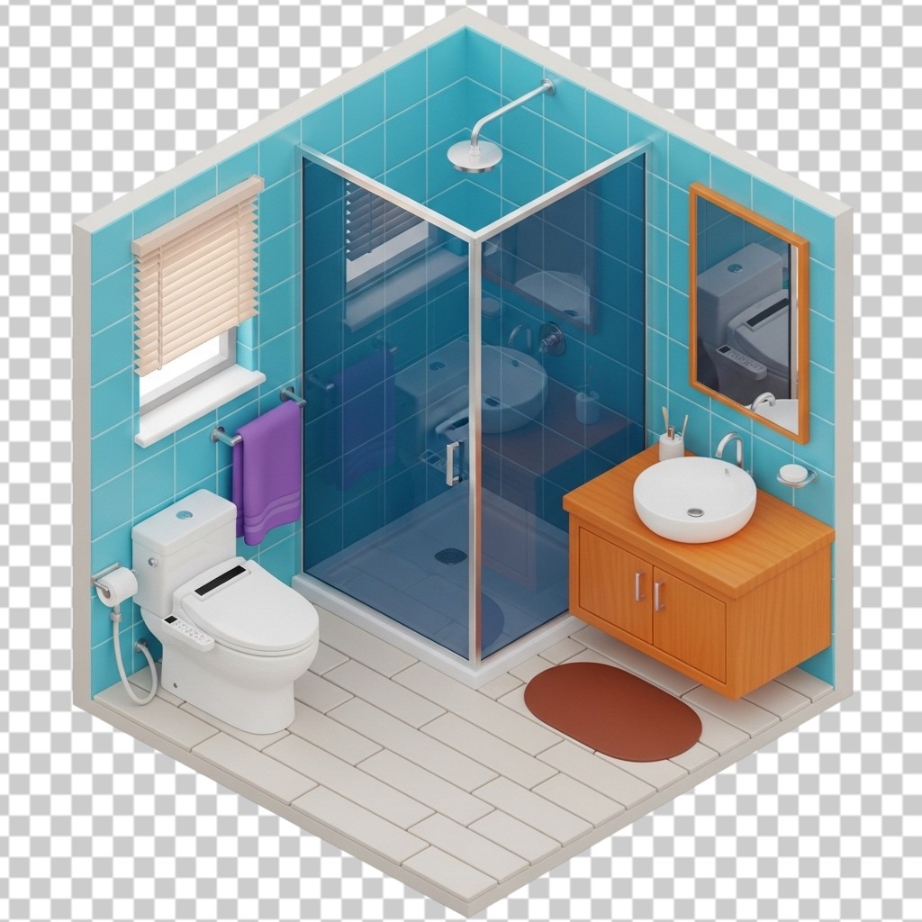 3D Isometric Modern Bathroom Interior Design PNG Transparent Background