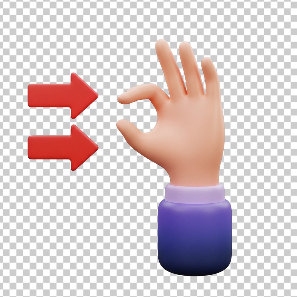 3D Human Hand Gesture with Red Selection Arrows PNG Transparent Background
