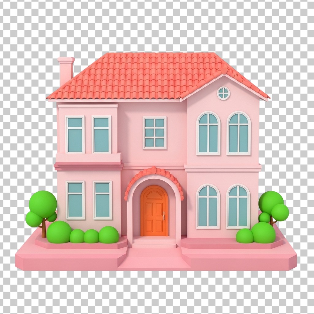 3D Two Story Pink Residential House Building Illustration PNG Transparent Background