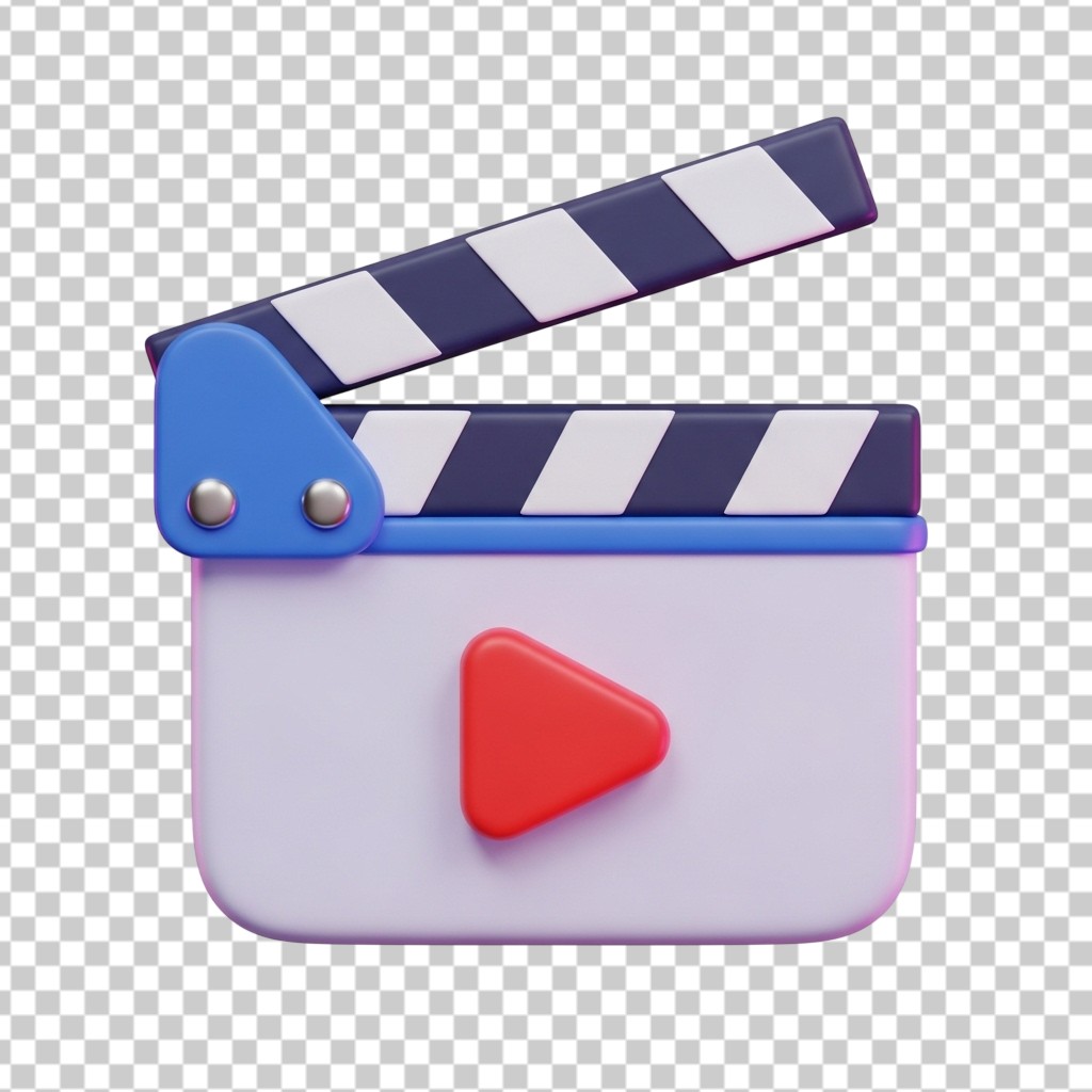 3D Movie Clapperboard Icon for Film Production and Media PNG Transparent Background