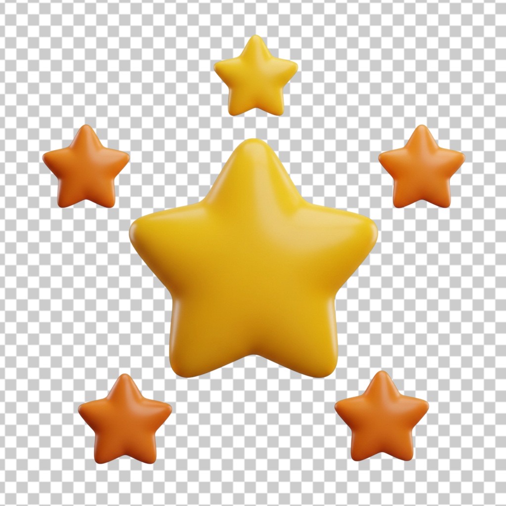 Group of Shiny 3D Golden Rating Stars Elements PNG Transparent Background