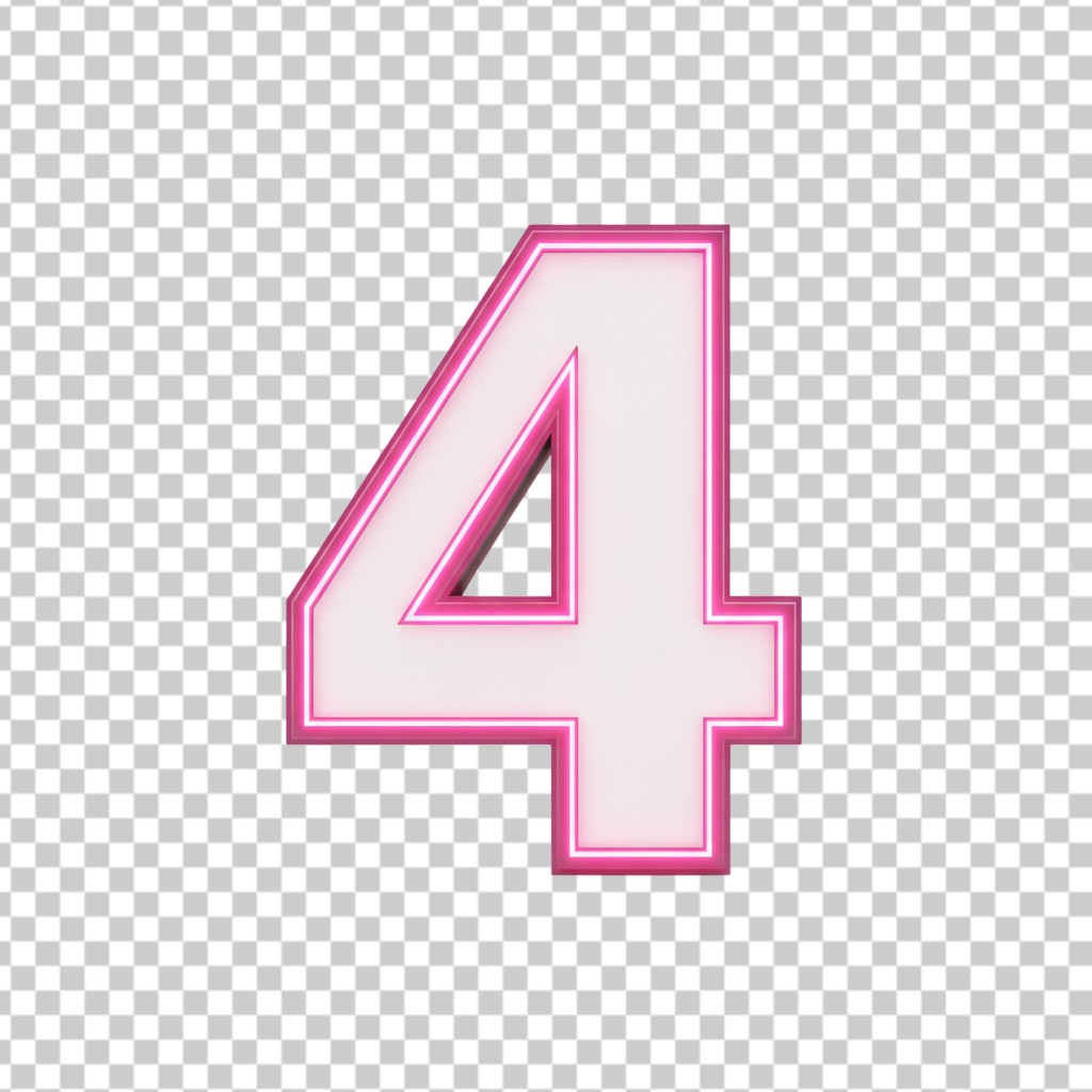 3D Pink and White Number Four 4 Decorative Font PNG Transparent Background