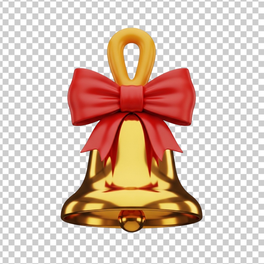 3D Golden Christmas Bell with Red Ribbon Bow PNG Transparent Background