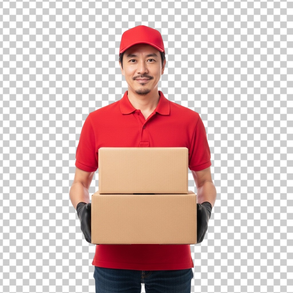 Friendly Delivery Man Holding Cardboard Boxes PNG Transparent Background