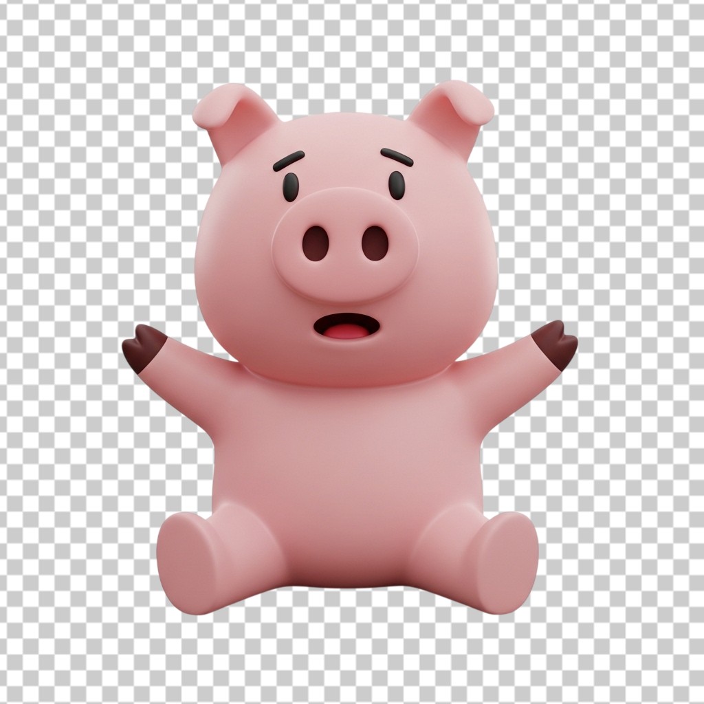 Cute 3D Pink Pig Character Sitting and Looking Surprised PNG Transparent Background