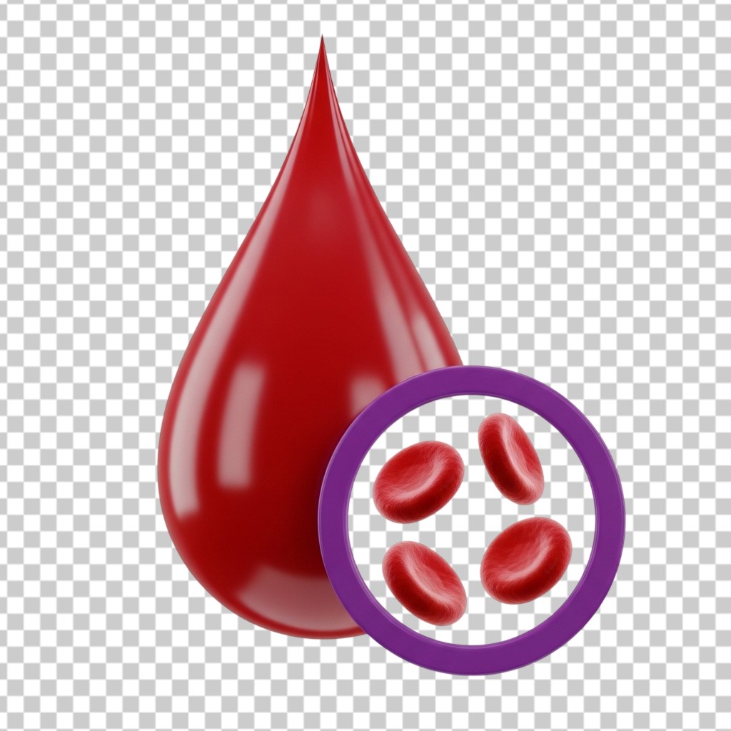 3D Red Blood Drop with Microscopic Blood Cells Medical Icon PNG Transparent Background