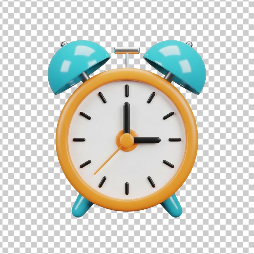 3D Classic Yellow and Blue Twin Bell Alarm Clock PNG Transparent Background