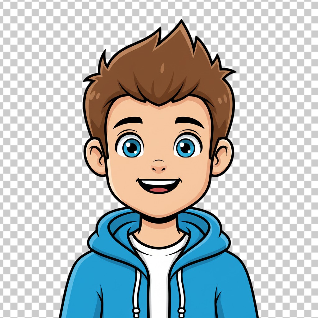 Happy Young Boy Character in Blue Hoodie Cartoon Style PNG Transparent Background
