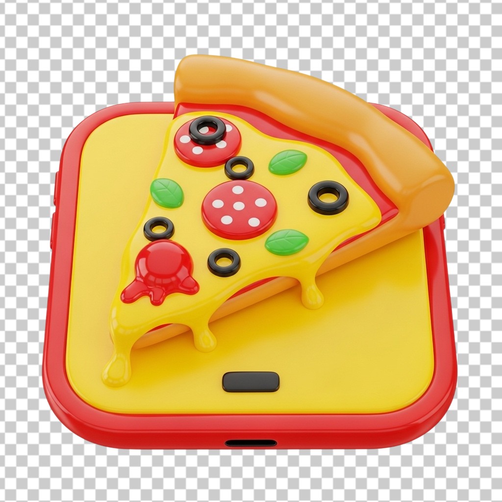Pizza Slice Icon App Button 3D Illustration PNG Transparent Background