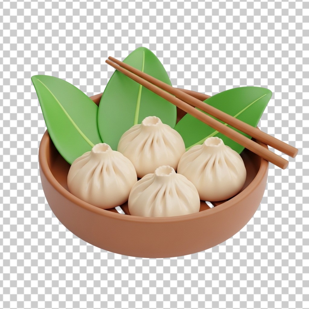 3D Bowl of Traditional Steamed Dumplings with Chopsticks PNG Transparent Background