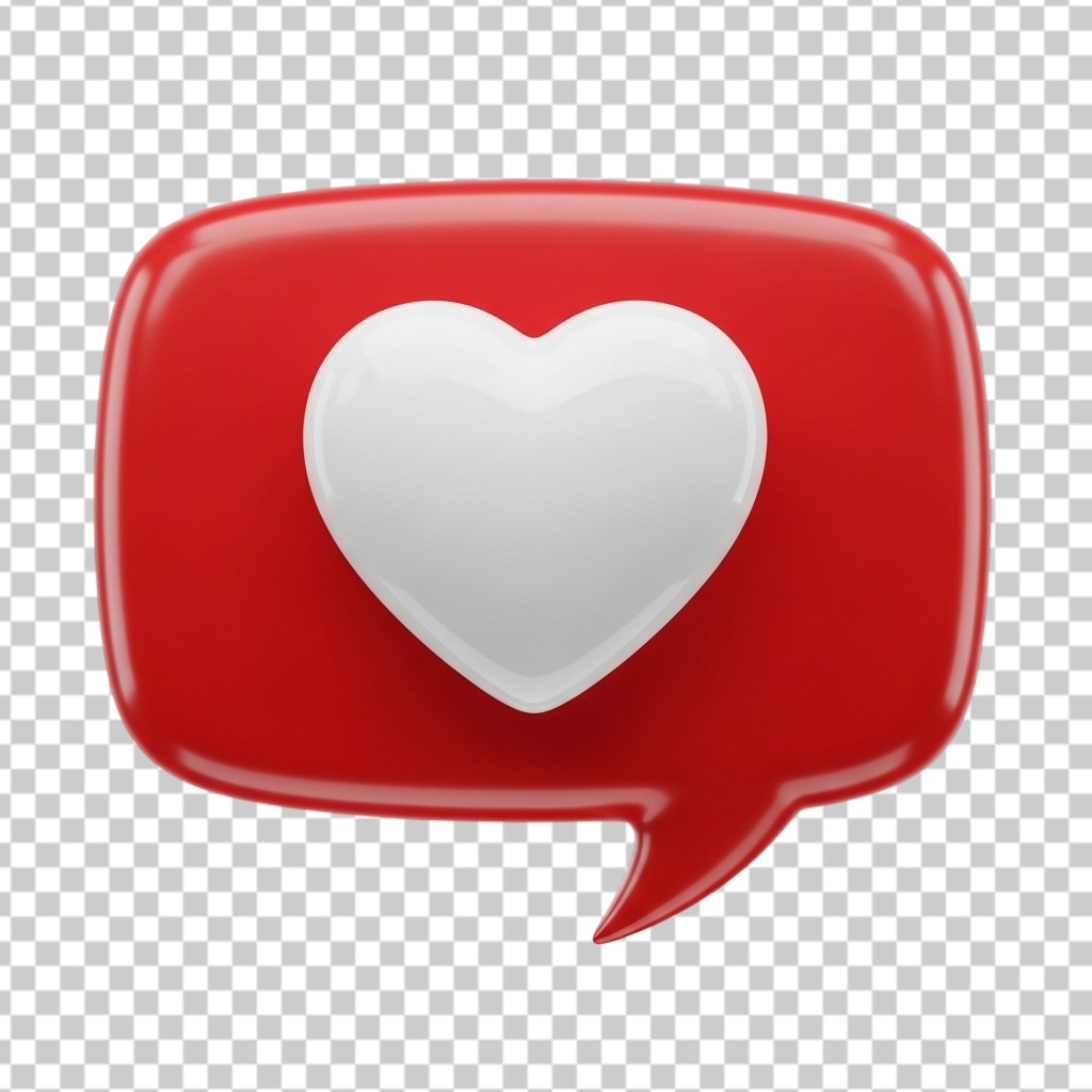 3D Glossy Red Heart Notification Bubble Icon PNG Transparent Background