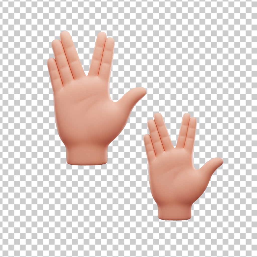 3D Vulcan Salute Human Hands Cartoon Style Illustration PNG Transparent Background