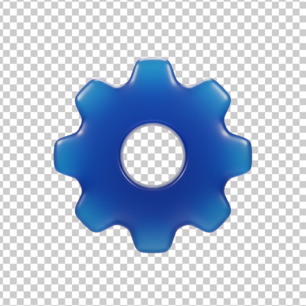 3D Blue Industrial Gear or Cogwheel Icon PNG Transparent Background
