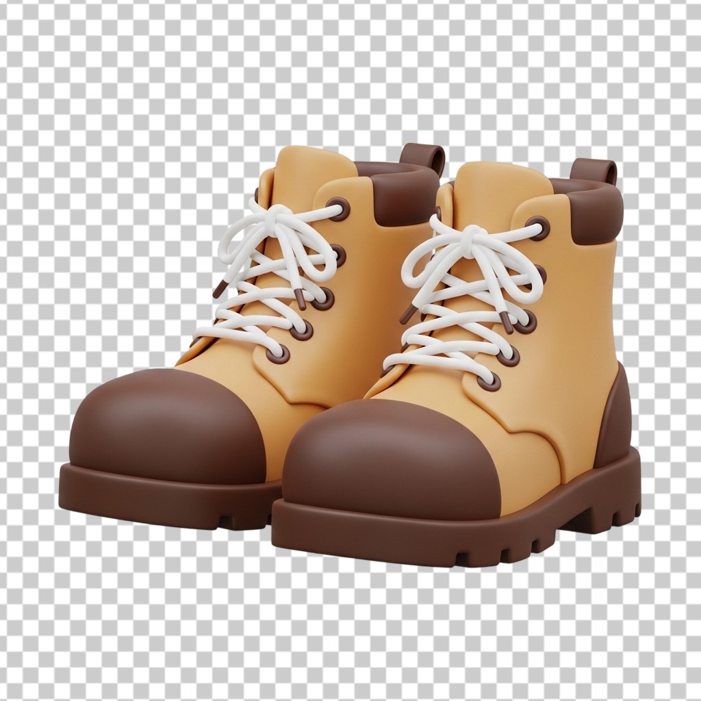 3D Pair of Brown Hiking Boots Illustration PNG Transparent Background