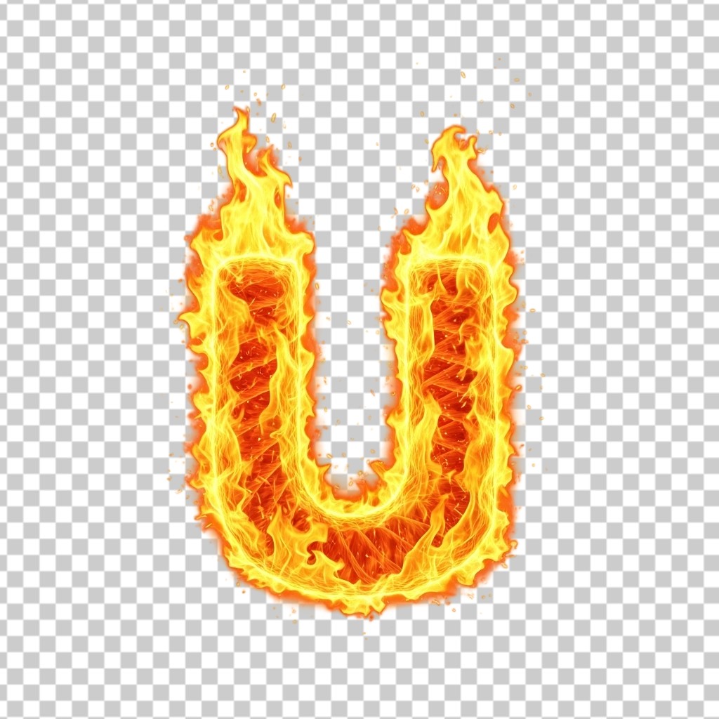 Burning Fire Flame Letter U Alphabet PNG Transparent Background