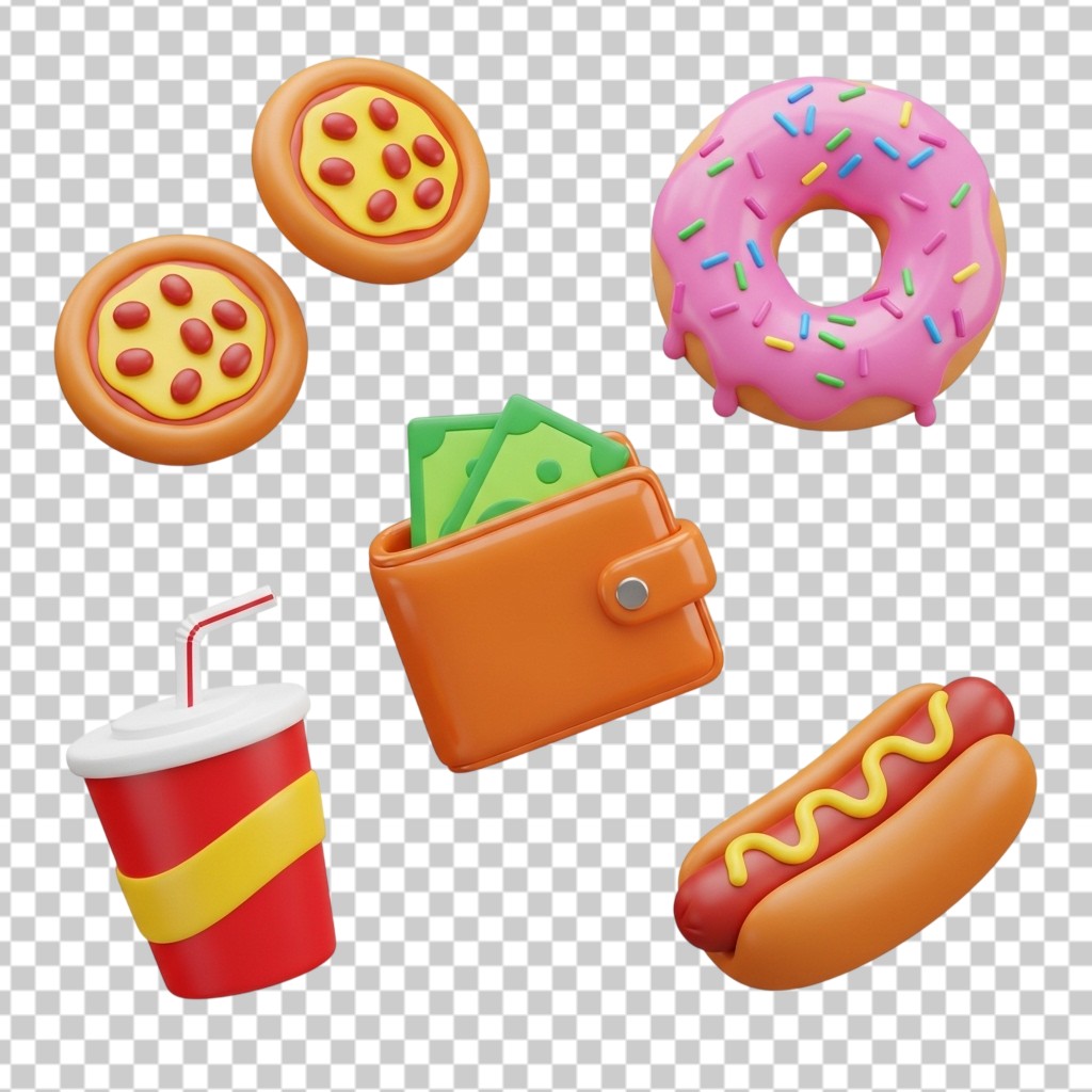 Fast Food Combo Collection with Pizza Burger and Soda 3D PNG Transparent Background