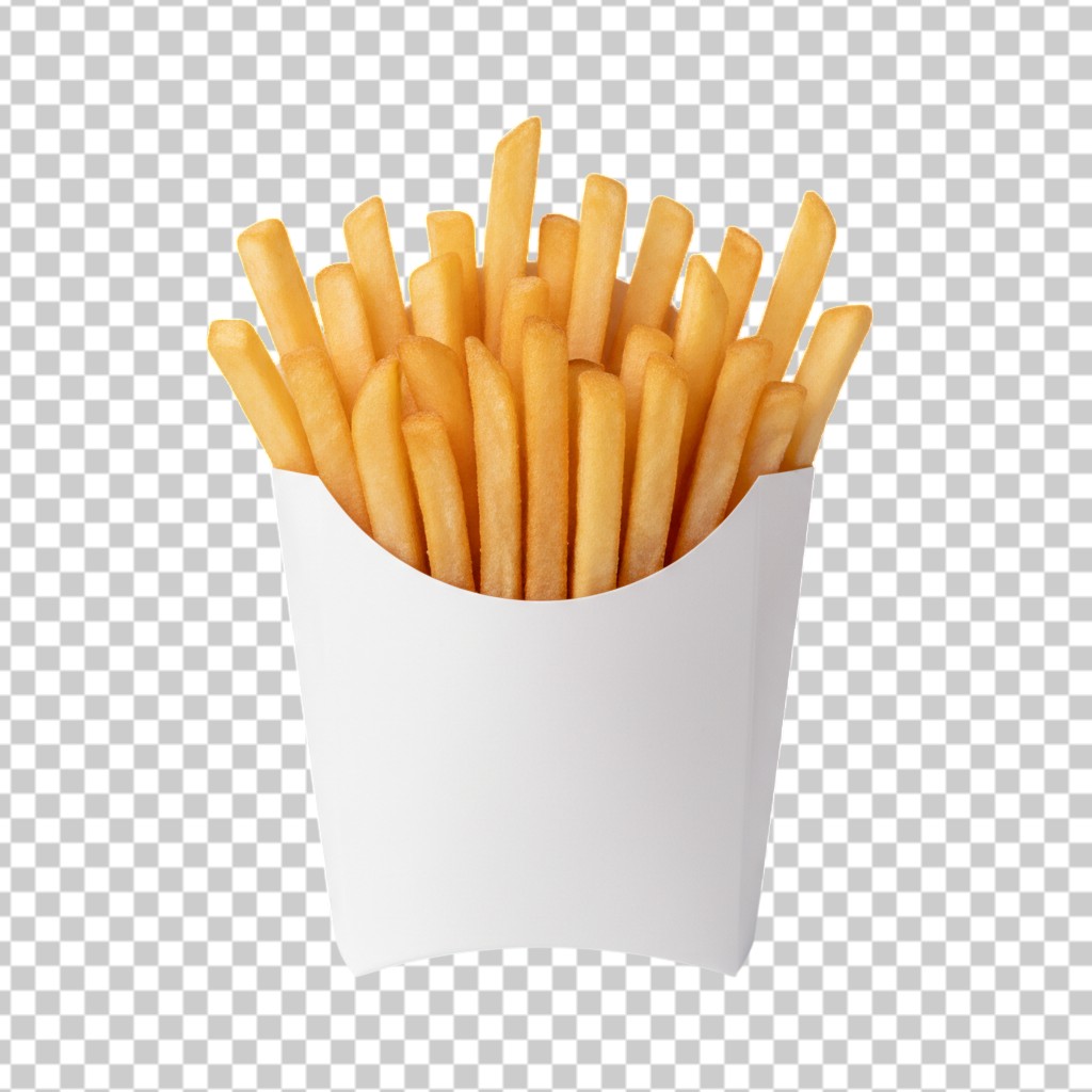 Golden French Fries in White Paper Cup PNG Transparent Background