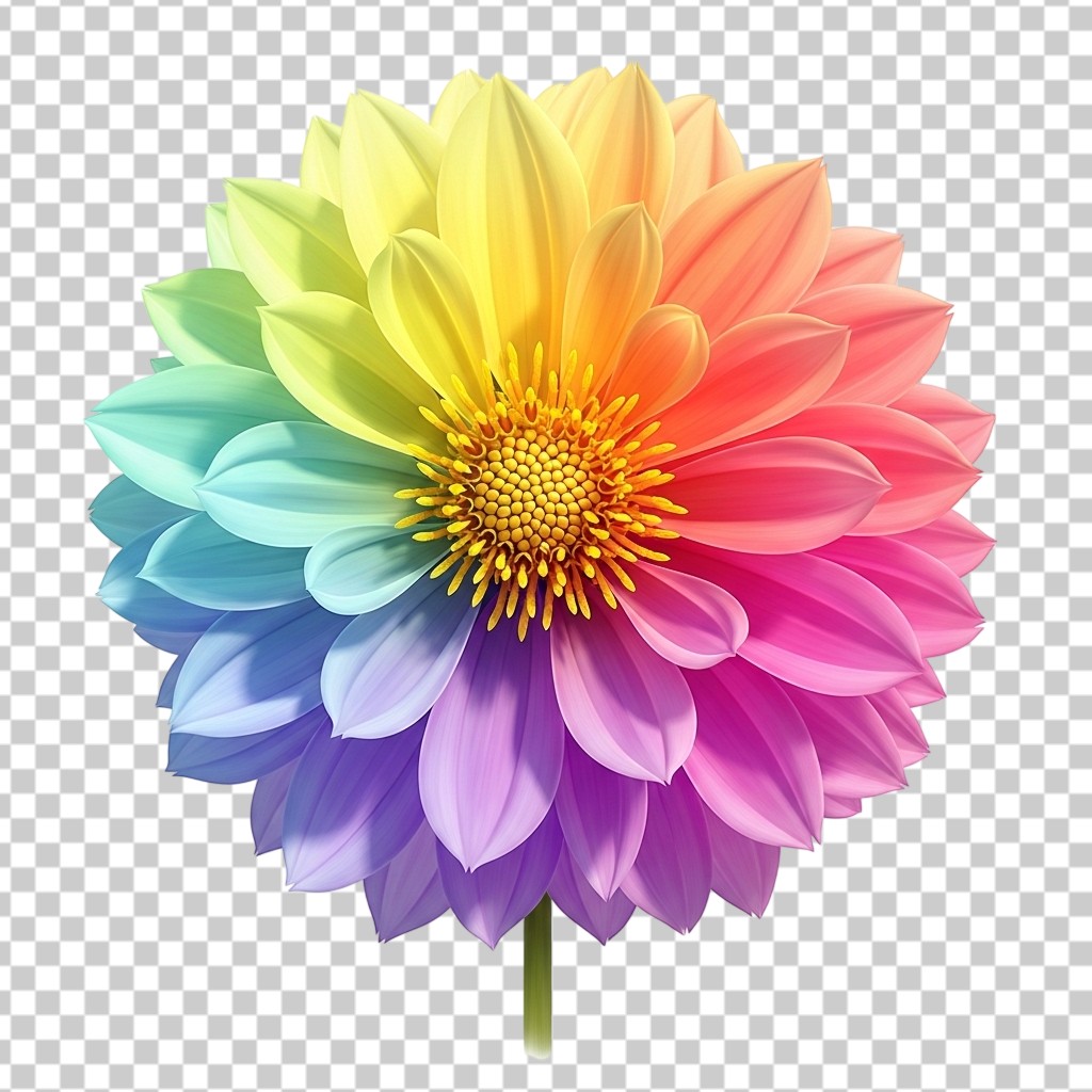 Bright Multicolored Rainbow Dahlia Flower Bloom PNG Transparent Background