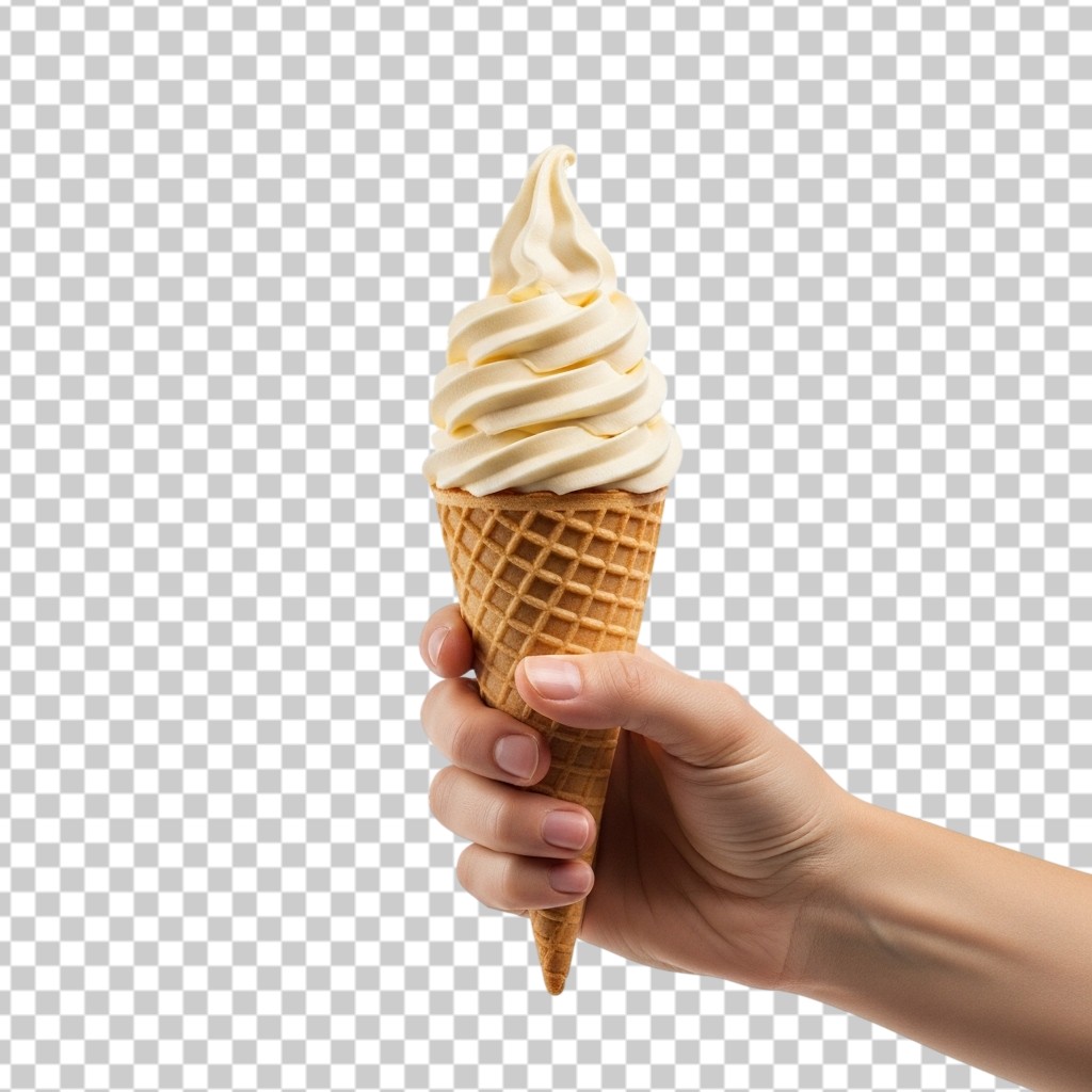 Hand Holding Soft Serve Vanilla Ice Cream Cone PNG Transparent Background