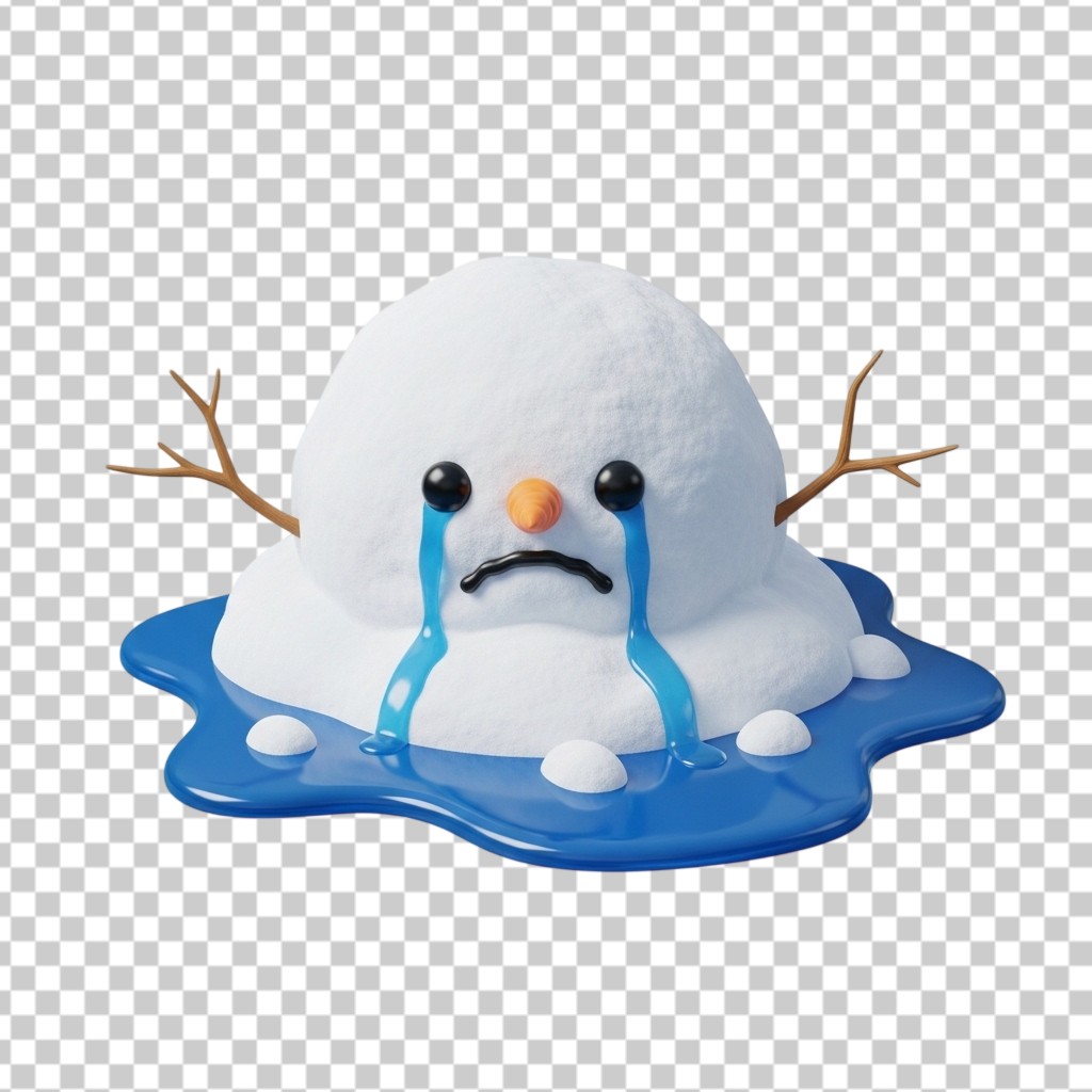 Sad Melting 3D Snowman Character PNG Transparent Background