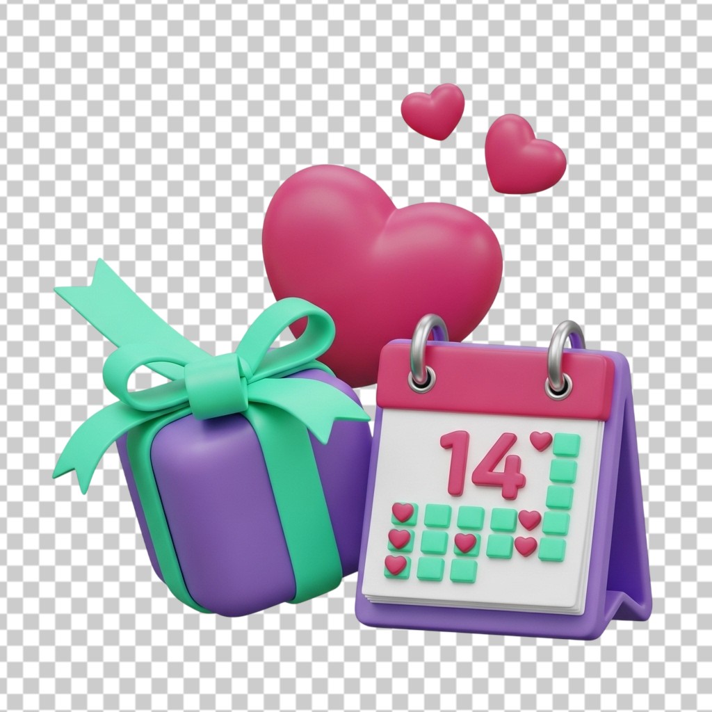 3D Valentine's Day Gift Box and Love Calendar PNG Transparent Background